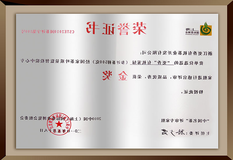 红茶、绿茶通过“杭州万泰”有机茶认证。目前,更香茗茶、PA视讯技术